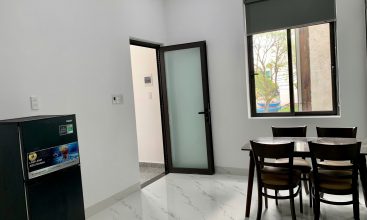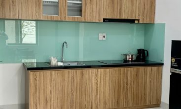 Đầy đủ nội thất: bếp đôi, mặt giặt lồng ngang, lò vi sóng, bàn ăn lớn, tivi